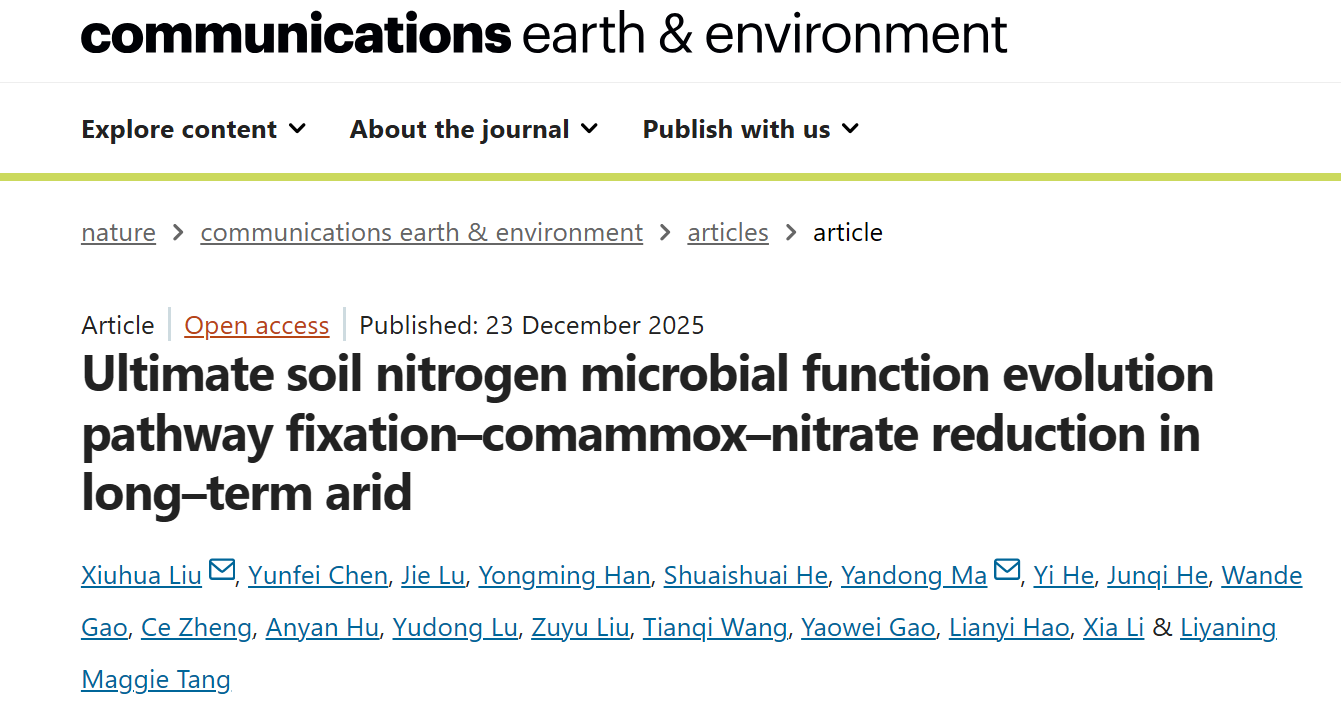 12月23日,澳门太阳城集团 刘秀花教授团队在Nature子刊《地球与环境通讯》(Com...