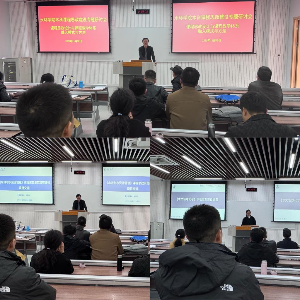 陈洁老师汇报《水文地球化学》课程思政建设进展,详细阐述了如何深入挖掘课程内容中蕴含的思政元素,并系统介绍了其课程思政的顶层设计思路,通过案例教学、项目驱动、情境创设等方式,将家国情怀、科学家精神、工匠精神、文化自信等自然融入知识讲授与能力培养过程中,实现价值引领、知识传授、能力培养的有机统一。
