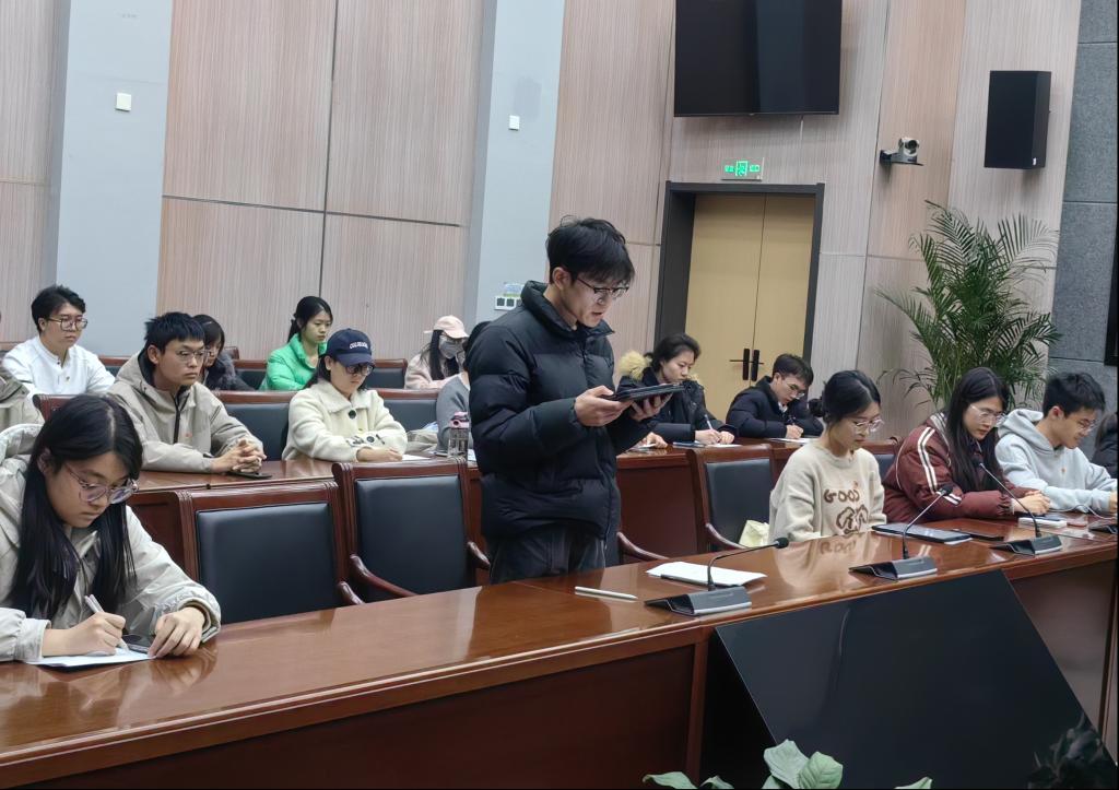 为巩固深化党员教育培训成果,引导师生党员筑牢理想信念根基,12月23日晚,水环学院本科生党支部于渭水校区师生服务大厅二层第一报告厅开展2025年党员基本培训第三次集中大课交流研讨。水环学院学生工作办公室主任谈震、团委书记伊力夏提,支部师生党员及发展对象参加研讨,会议由本科生第一党支部书记李金洋主持。