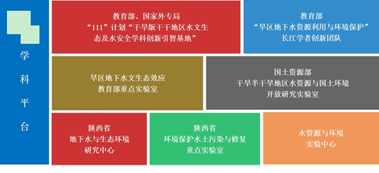 我系学科平台优势突出,教学与科研条件完善。依托“地质资源与地质工程”、“水利工程”两个一级学科,拥有地质资源与地质工程、水利工程两个一级学科博士学位授予权,及其下属的地下水科学与工程二级博、硕士学位授予权,拥有水利工程博士后流动站;现拥有国家“111”创新引智计划“长安大学干旱半干旱地区水文生态及水安全学科创新引智基地”,拥有旱区地下水文与生态效应教育部重点实验室、国土资源部干旱半干旱地区水资源与国土环境开放研究实验室、陕西省地下水与生态环境工程中心等省部级重点实验室。此外,还建成了多功能降雨大厅、水力学实验室、水资源与环境实验中心三大实验基地,水与环境原位试验场、鄂尔多斯水盐运移原位试验场两大实训基地,汉中梁山地质教学实习基地、陕西蓝田专业教学实习基地、鄂尔多斯野外实习基地三大校外实习基地,在中国地质调查局西安地调中心、中煤科工集团西安研究院、西安水务集团、泾惠渠灌区管理局、青海省环境地质勘查局、甘肃地质环境监测院、宁夏地质环境监测院等9个“产学研三结合”基地,建成了1个大学生创新实验区和一个水资源系统仿真模拟实验室。