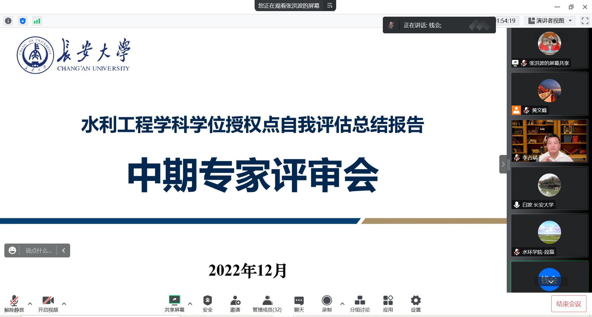 水利工程一级学科博士学位授权点自评估评审会在线上召开,会议邀请了国务院学位委员会第八届学科评议组成员、西安理工大学李占斌教授,清华大学王恩志教授,中国地质大学(北京)大学王广才教授,西北农林科技大学胡笑涛教授和天津大学刘东海教授作为评审专家。长安大学研究生院副院长柳有权、澳门太阳城集团