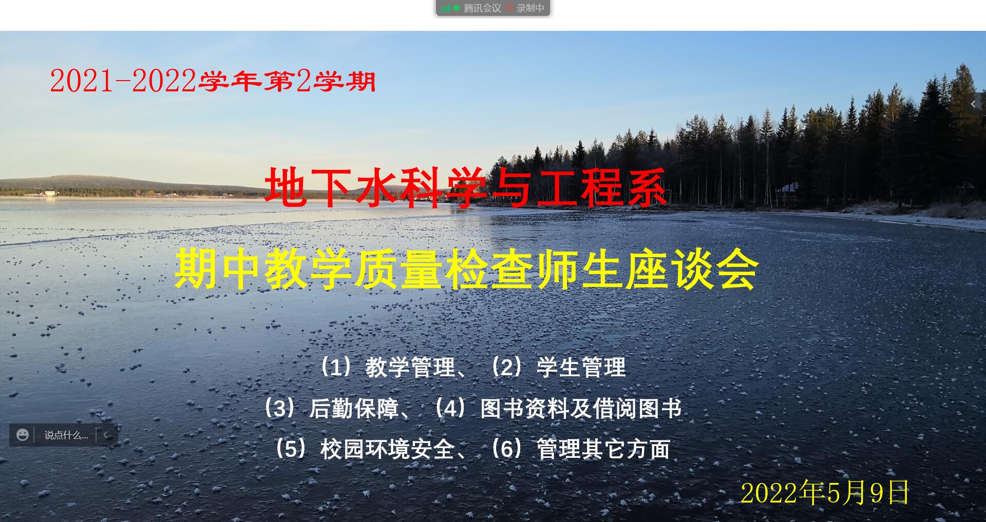 、系室在教育教学、管理服务等方面的意见和建议,及时发现和处理教学各环节存在的问题,根据《长安大学期中教学质量检查实施办法》(长大教〔2012〕296号)文件精神,地下水科学与工程系于5月9日下午,利用腾讯会议召开了2021-2022学年第二学期期中教学质量检查师生座谈会,澳门太阳城集团