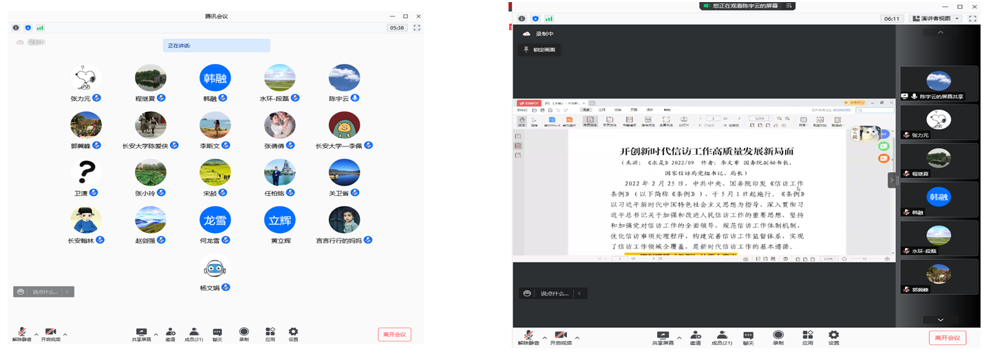 2022年5月19日晚20:00,环境工程系党支部在线上开展了《信访工作条例》主题学习活动,本次会议由支部书记陈宇云主持,环境工程系全体党员参加了此次会议。