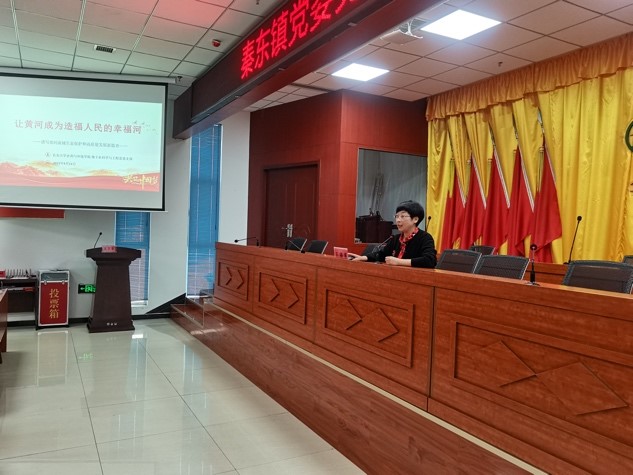 地下水系党支部书记王疆霞为秦东镇青年干部作了以“让黄河成为造福人民的幸福河——谱写黄河流域生态保护和高质量发展新篇章”为主题的汇报,阐释了黄河流域在生态社会经济发展的重要地位,介绍了《中华人民共和国黄河保护法》的特色,指出了黄河水资源现状及存在问题,强调了“黄河宁,天下平”,贯彻落实黄河流域生态保护和高质量发展国家战略既是攻坚战,也是持久战。
